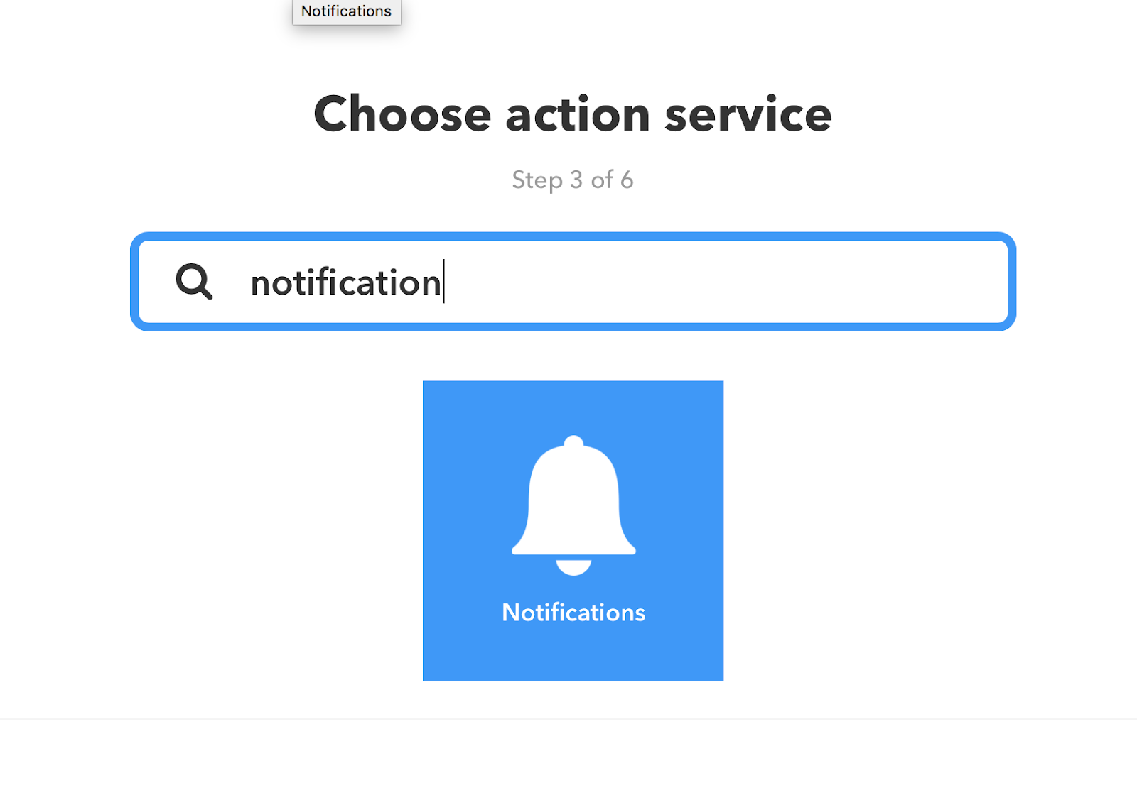 Now we need to choose our action service, here we are going to choose a notification action, which will give notification on our phone when the “this” trigger happens.